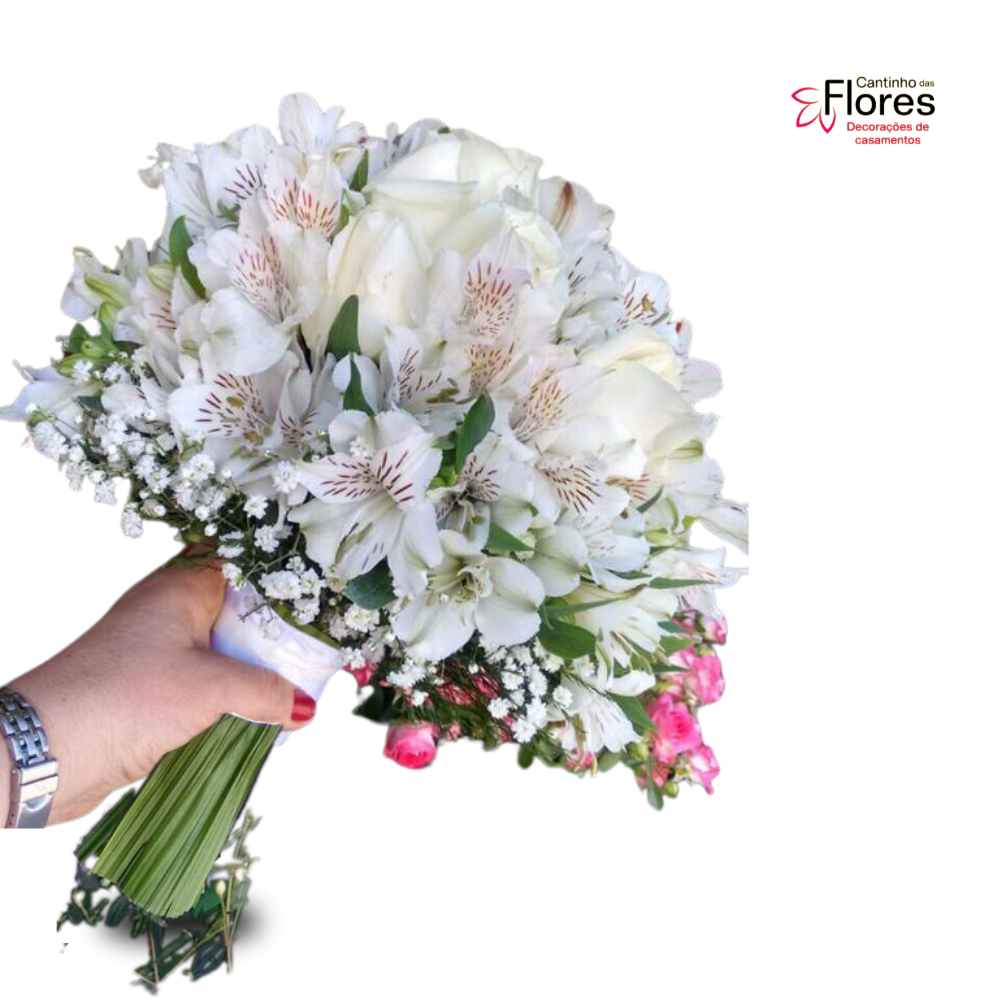 Buquê de noiva de astromélias e rosas naturais.