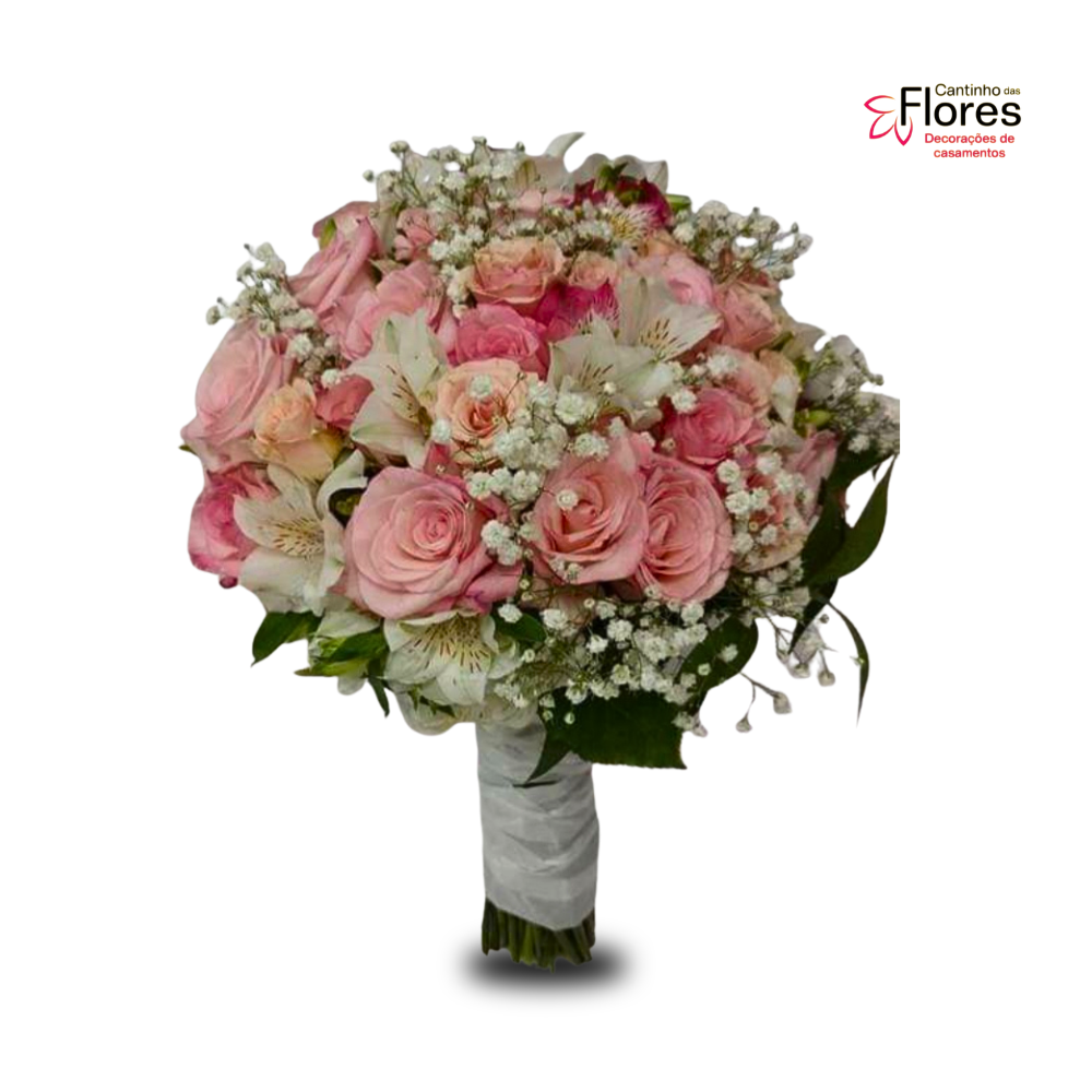Buquê de noiva natural tradicional (rosas, astromélias, chuverinho e outros complementos).