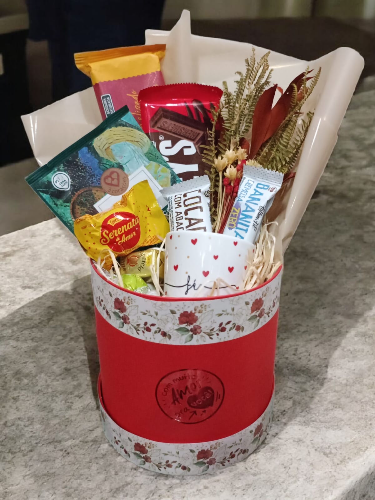 Conheça a Caixa Box Presente , perfeita para quem busca uma seleção de alimentos gourmet para um café da manhã ou lanche especial. Esta caixa conta com produtos variados, como biscoitos, chocolates uma xicara decorada, ideal para quem deseja surpreender com qualidade a embalagem é elegante e charmosa, ideal para presentear.