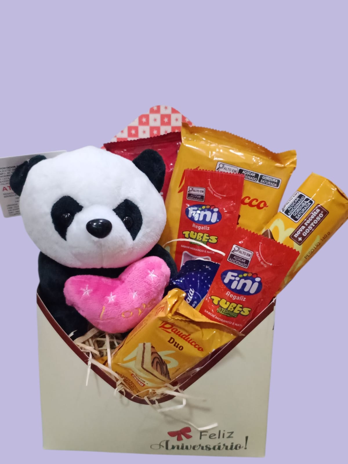 Apresentamos a Caixa Envelope Feliz Aniversario, ideal para presentear com estilo e praticidade. Esta embalagem combina design elegancia com funcionalidade para tornar seu presente inesquecível. Contém um urso de Pelúcia, bombons, biscoitos bauducco e balas fini.